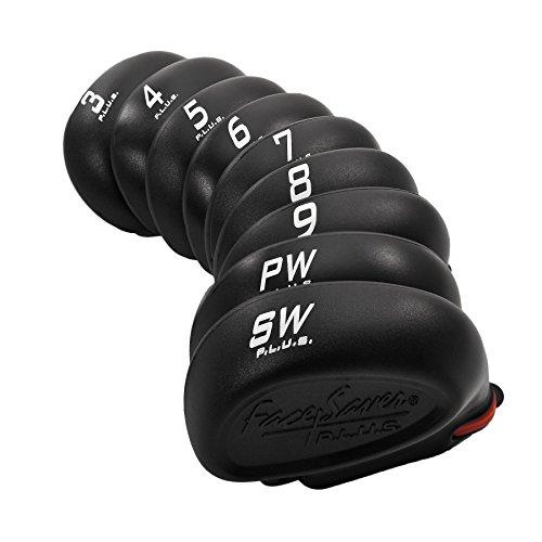 The ultimate iron cover with a hosel lock to prevent loss. Comes with a lanyard per 2 covers to resist tangling. Fits regular and oversize irons. 10 piece set designed for 3, 4, 5, 6, 7, 8, 9, pitching wedge, and sand wedge.